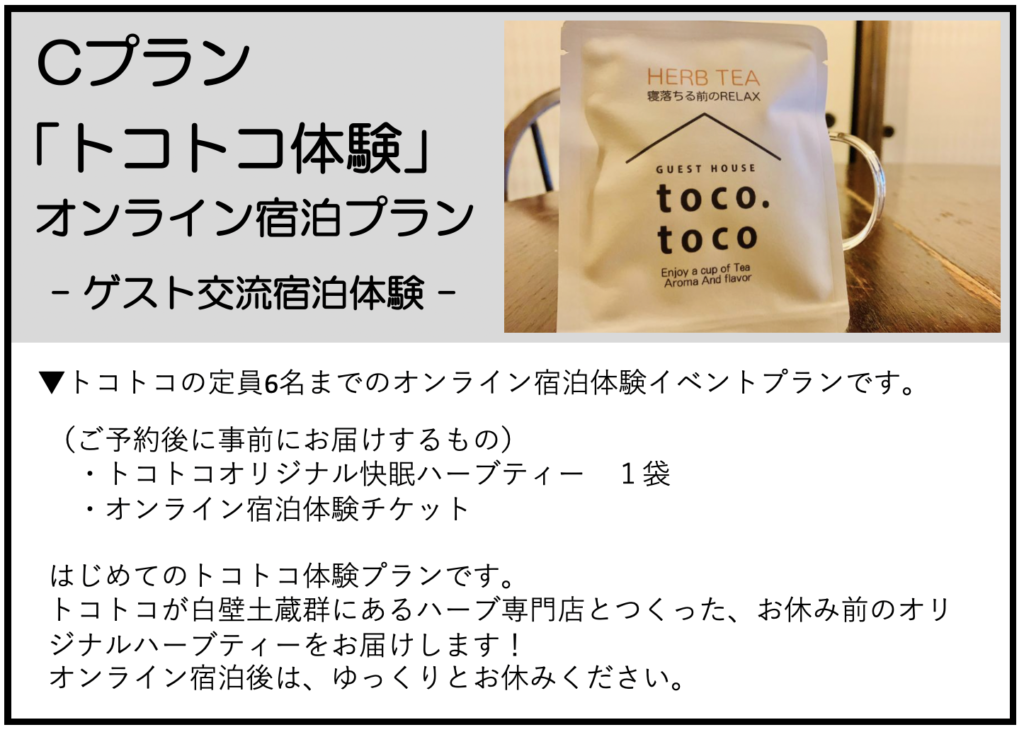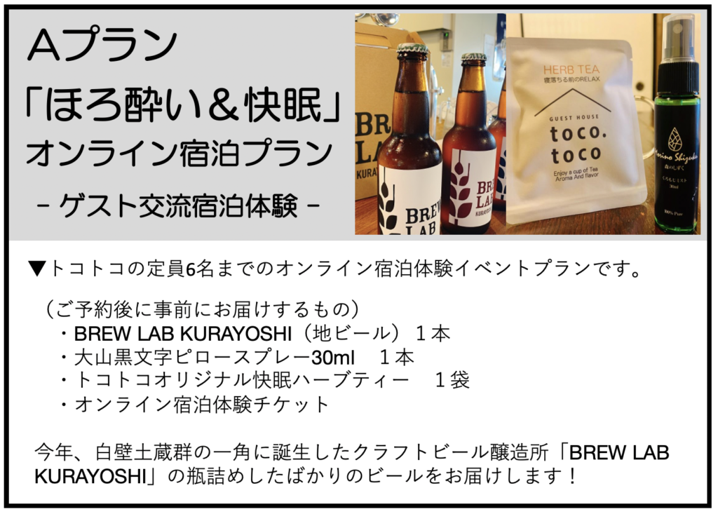 ▼オンライン「ゲストハウス宿泊」プラン