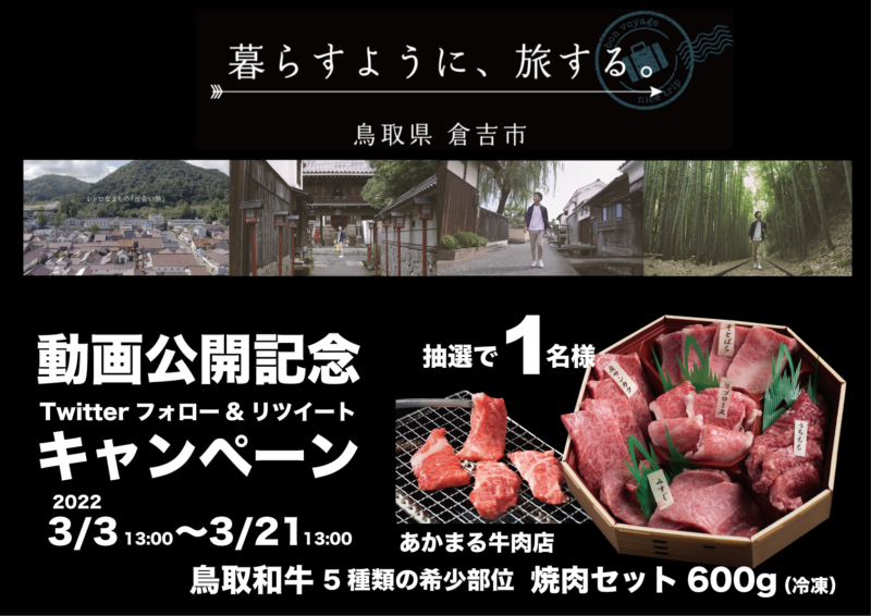 倉吉観光MICE協会の公式Twitterアカウント(@kuratmicecs)をフォロー後、対象ツイートをリツイートした方の中から豪華賞品が抽選で1名様に当たります。